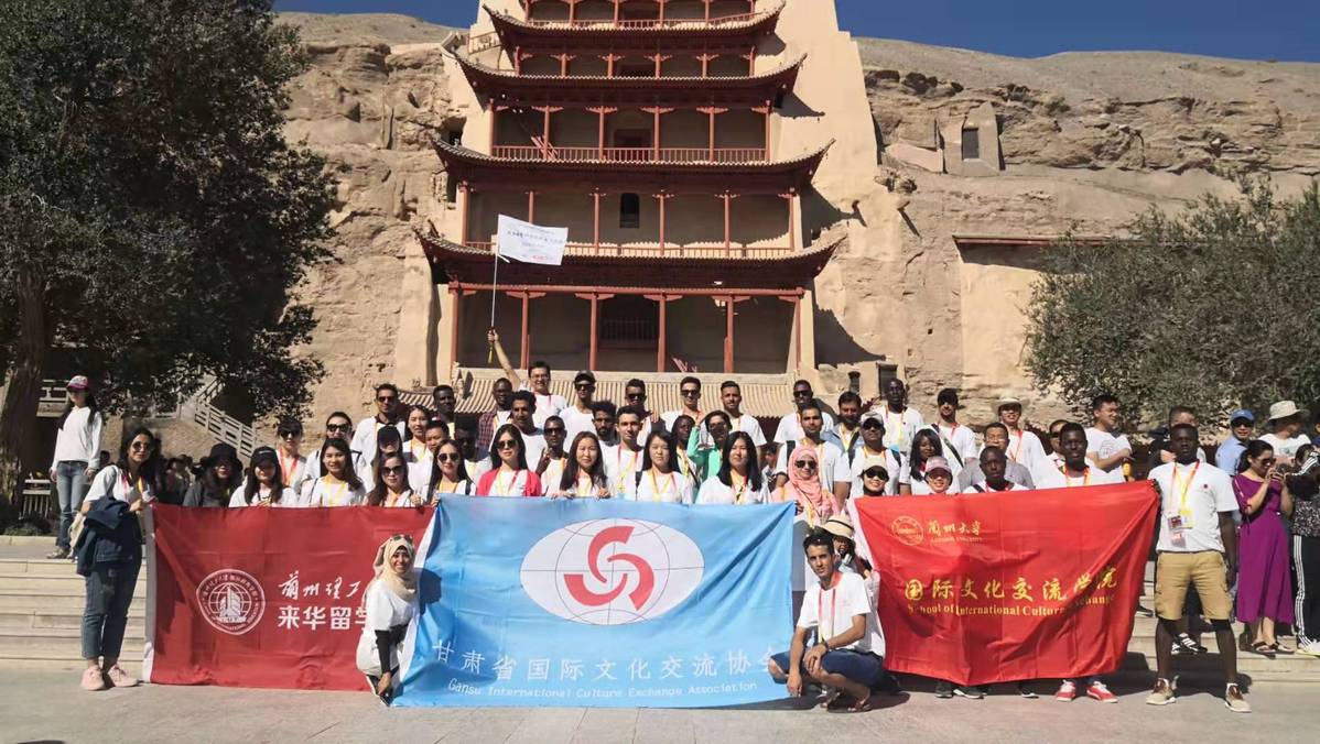 2019年8月30日—31日,由甘肅省國際文化交流協會、蘭州大學國際文化交流學院、蘭州理工大學國際教育學院主辦,甘肅省國際文化交流協會敦煌文創基地、甘肅萬華人力資源管理有限公司、敦煌月泉小鎮文化旅游有限公司承辦的“感知甘肅、研學之旅、魅力敦煌”文化體驗活動在敦煌舉行。此次活動讓一帶一路沿線16國來華留學生們體驗校外文化實踐課程,在旅行中感受絲路文化,讓他們更好地學習中國文化,感知中華文明,傳播中國友誼。
