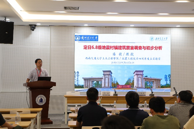 李宏男教授以“重大工程安全監測系統集成及其工程應用”為題,從工程結構的興建及面臨的破壞性災害出發,論述了目前存在的問題及采用結構健康監測技術的必要性。吳巧云教授聚焦于“高層建筑與城軌綜合體結構振動控制關鍵技術及應用”,重點介紹了團隊在高層建筑隔震減振控制、車場結構隔震減振控制以及聲學超材料減振等領域的最新研究成果。潘毅教授以“西藏定日6.8級地震村鎮建筑震害調查與分析”為題,結合在日喀則地區5個縣、20余個受災鄉(鎮)的實地調查成果,總結了災區典型民居的建筑特點,闡述了生土結構、砌塊砌體結構、鋼混結構和減震結構五類結構的典型震害特征。