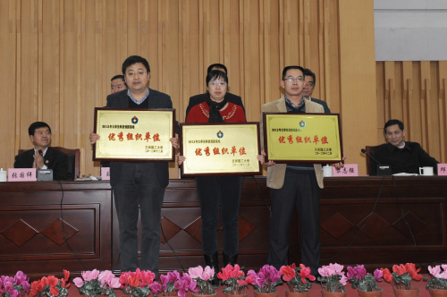 學校領導為2012年大學生科技創新基地優秀組織單位頒獎