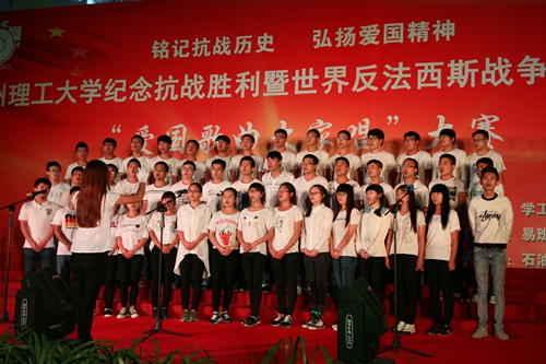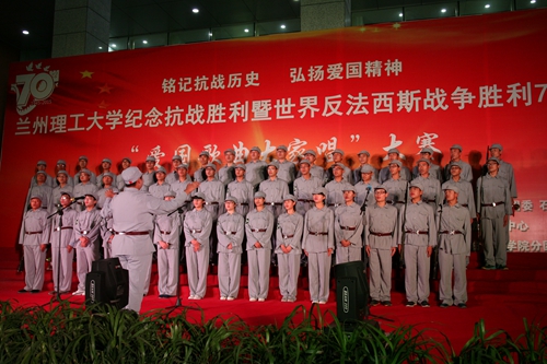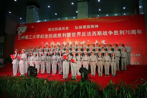 9月17日晚7點,蘭州理工大學(xué)“銘記抗戰(zhàn)歷史,弘揚愛國精神”紀念抗戰(zhàn)勝利暨世界反法西斯戰(zhàn)爭勝利70周年“愛國歌曲大家唱”紀念活動在石化廣場隆重舉行。石化學(xué)院參賽班級分別獻上了《保衛(wèi)黃河》、《國家》、《強軍戰(zhàn)歌》、《團結(jié)就是力量》等一首首經(jīng)典愛國歌曲,同學(xué)們縱情高歌,唱出了英雄氣概,唱出了心中豪邁,唱出了對黨和國家的美好祝愿。
