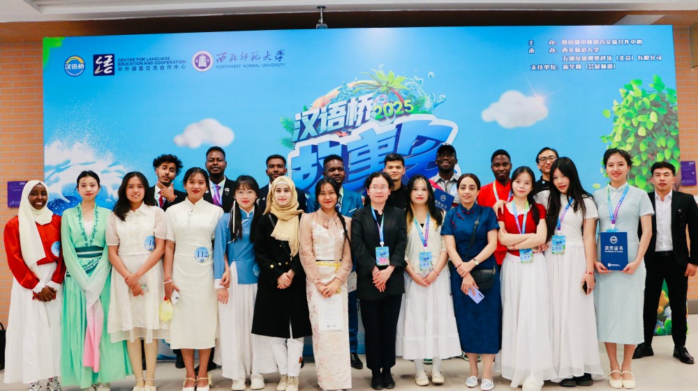 5月17日,由教育部中外語言交流合作中心主辦,西北師范大學、五洲漢風網絡科技(北京)有限公司承辦的 2025“漢語橋”全球外國人漢語大會——故事會西北賽區預賽在西北師范大學舉辦。國際合作部派出來自柬埔寨、緬甸、也門、剛果(布)等10個國家的24名國際學生參賽。國際合作部副部長冶文玲、輔導員慕雨軒參加此次活動。