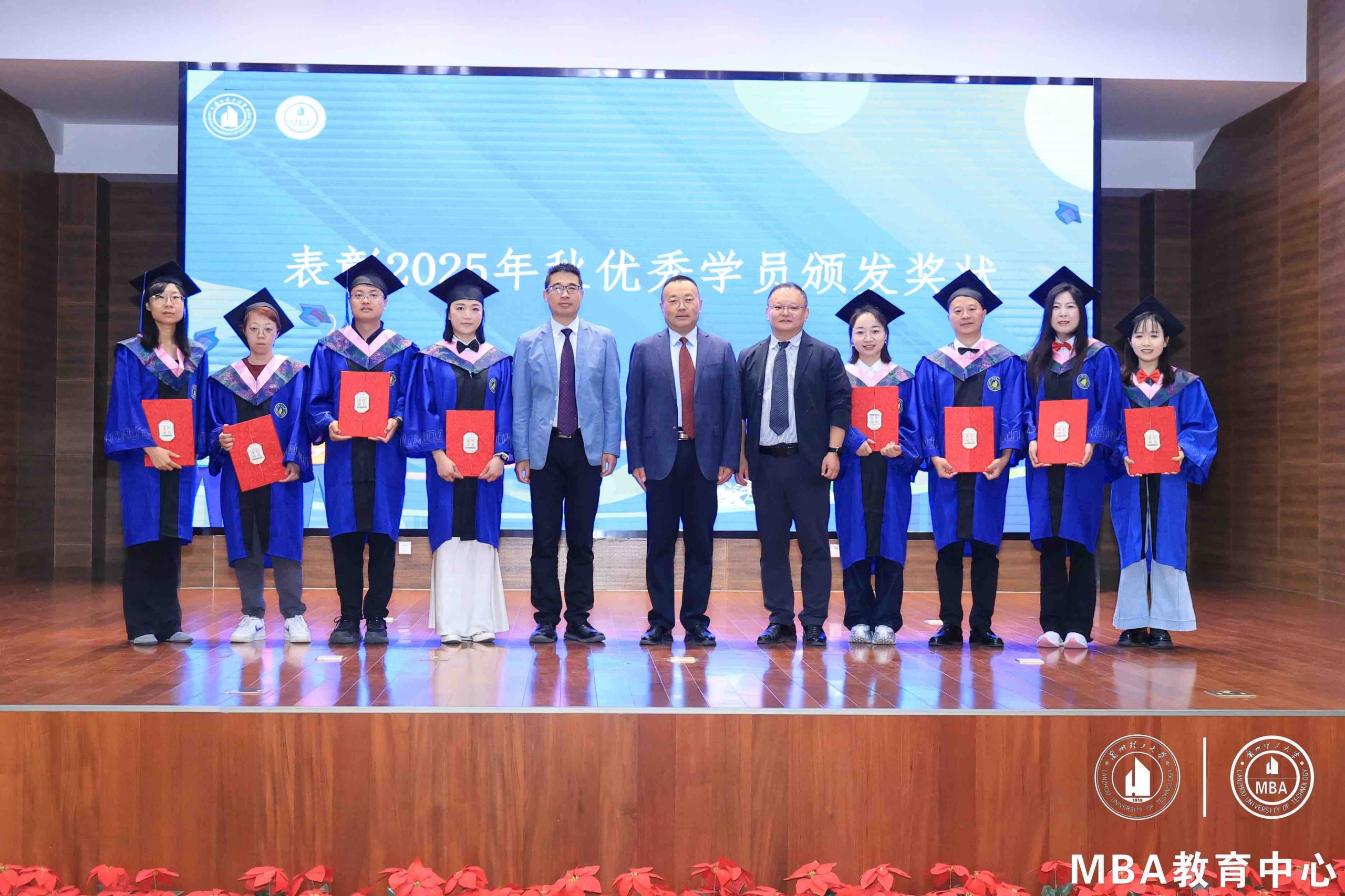 畢業典禮上,MBA學員代表向東鄉籍在校生頒發助學金,展現了MBA學子互幫互助、薪火相傳的優良傳統。受助學生也精心準備了書法作品回贈,表達對學長學姐們關愛與支持的感激之情。