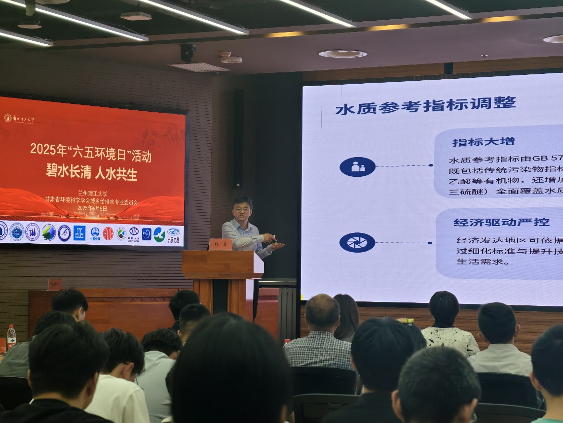 院長殷占忠致辭,希望通過本次活動深化生態文明教育,推動綠色校園建設,促進校企合作,搭建產學研平臺,聚焦黃河流域生態保護,推動黃河流域生態保護技術創新,助力甘肅綠色發展。蘭州大學程修文教授和蘭州城市供水(集團)有限公司楊勇主任作主題匯報,對流域水生態安全調查與評估、城市供水水質風險和供水廠全流程水質管控進行匯報交流。活動當天,在彭家坪校區大學生活動中心前廣場進行水科學技術展板科普展示與互動宣傳活動。在專委會工作會議中,王亞軍提出建立高效協同的城鄉給排水創新技術和標準化工作體系,協同推進城鄉給排水產業鏈上下游企業技術發展兩項學會工作重點。